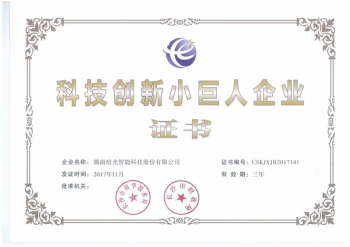 11月8日,湖南晗光智能科技股份有限公司獲長(zhǎng)沙市科學(xué)技術(shù)局和長(zhǎng)沙市財(cái)政局聯(lián)合頒發(fā)的“科技創(chuàng)新小巨人企業(yè)”稱(chēng)號(hào)!