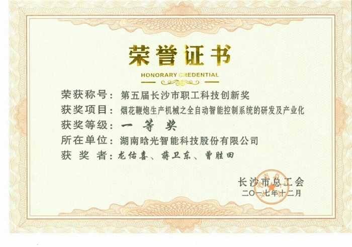 根據長沙市總工會長工發〔2017〕5 號文件《長沙市總工會關 于開展第五屆長沙市職工科技創新獎評選及展示活動的通知》的精神,經基層工會推薦和專家評審,華智科技生物技術有限公司 鄭秀婷等人完成的《SNP 分子標記開發》等5 個項目榮獲一等獎。湖南湘電長沙水泵有限公司張鐵等人完成的《電動循環水泵》等 20 個項目榮獲二等獎,廣汽三菱汽車有限公司楊德亮等人完成的 《一種涂膠膠槍加熱裝置》等30 個榮獲三等獎。授予五個一等獎 的第一完成人鄭秀婷、黃愷、戴煜、楊先樂、龍佑喜五位同志“長沙市五一勞動獎章”榮譽稱號。